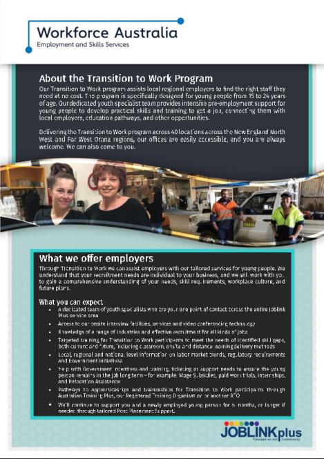 This is a Service Delivery Plan (SDP) for Transition to Work (TtW).